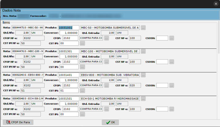 • CFOP de/para: De/Para de CFOP