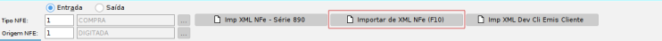 Fig. 4 - Botão Importar de XML NFe (F10)