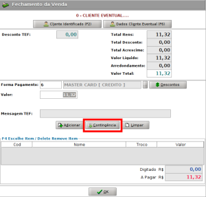 Formas de pagamento aprovadas com a opção de contingência serão exibidas com uma observação (tanto na tela de fechamento quanto no relatório de fechamento).