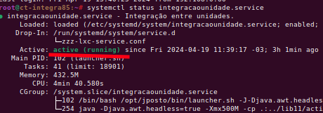 Em um terminal, digite o comando systemctl status integracaounidade.service