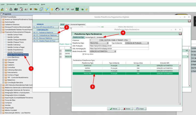 Na próxima versão do Pista que será disponibilizada ainda esta semana, estará disponível a rotina para recolha das notas do TruckPag. Esta rotina já esta disponível nos postos 49 e 35. Para que as demais unidades tambem utilizem esta nova sistemática após a atualização do Pista, é necessária a configuração de cada unidade conforme imagem abaixo.